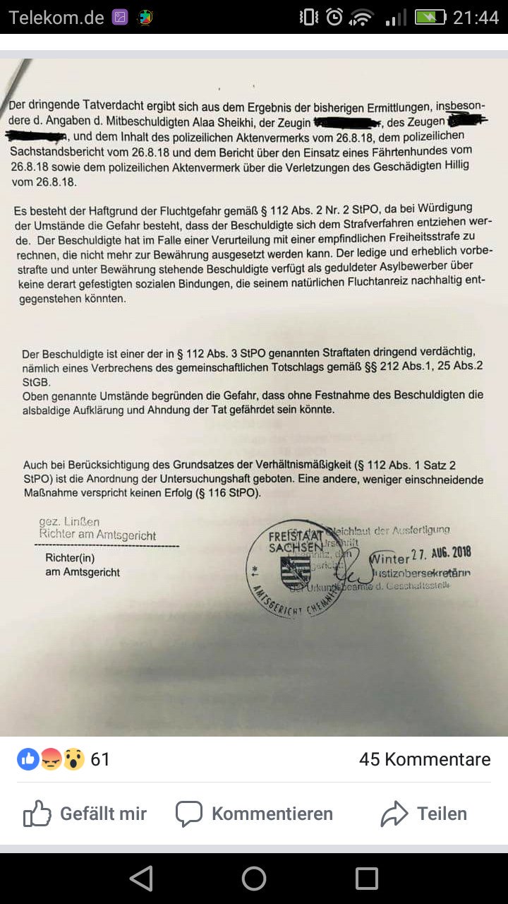 28. August, 2018Ich bin ob der Berichterstattung völlig sprachlos. Es ist ein Familienvater erstochen worden. Wie die Polizei mitlerweile verlauten ließ, unschuldig.(wurde ja vorher von Einigen angezweifelt) Zwei weitere Männer sind schwer verletzt!